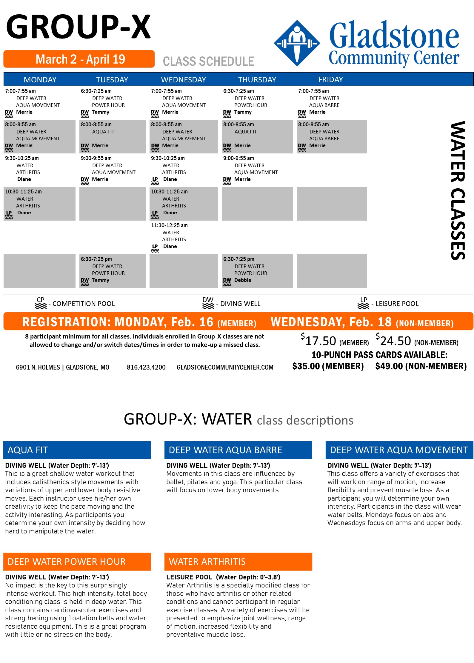 | Water Aerobics | January 5, 2026 - February 22, 2026 |